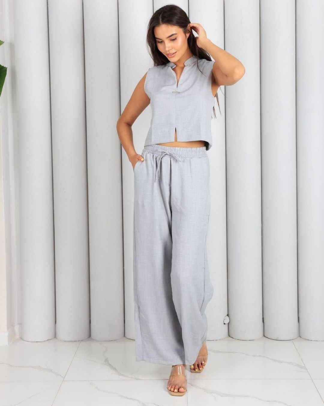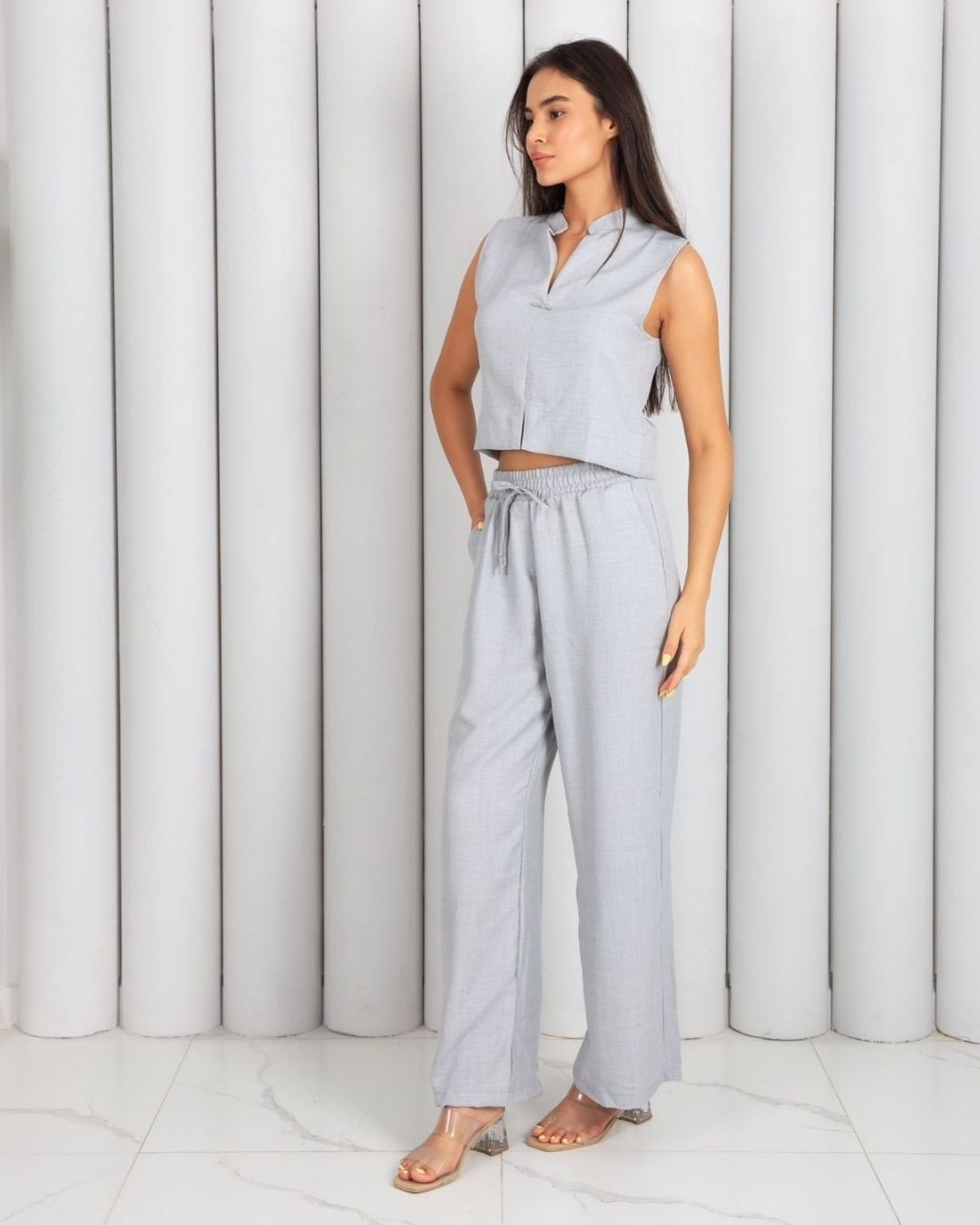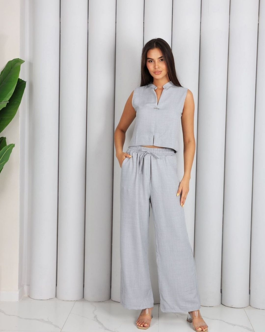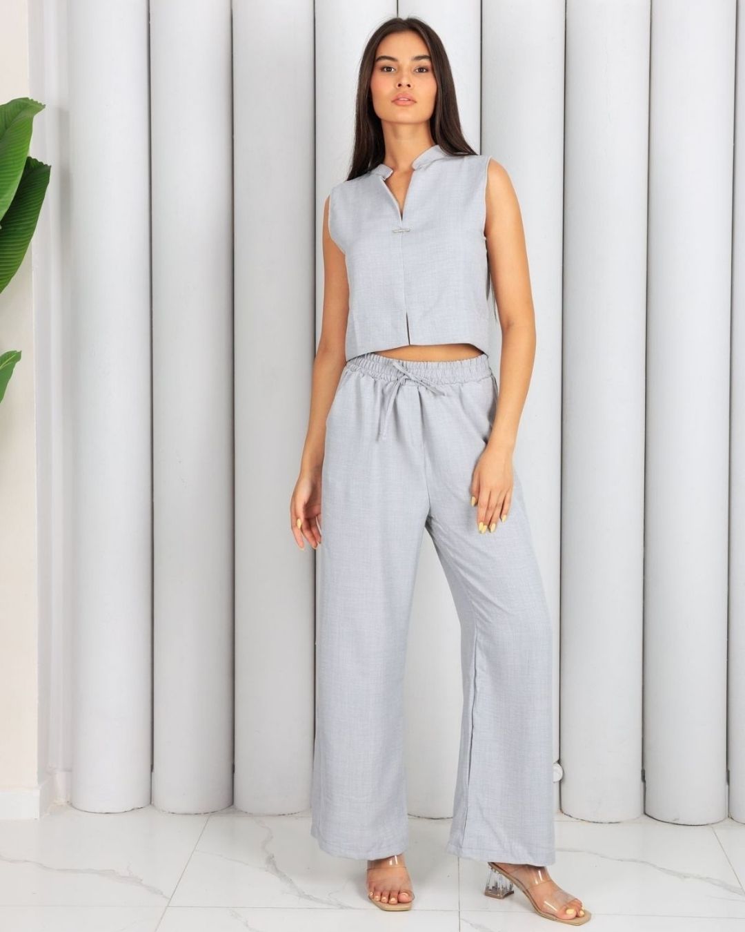 -Alt : Lastikli Yüksek Bel Bol Paça Pantalon
